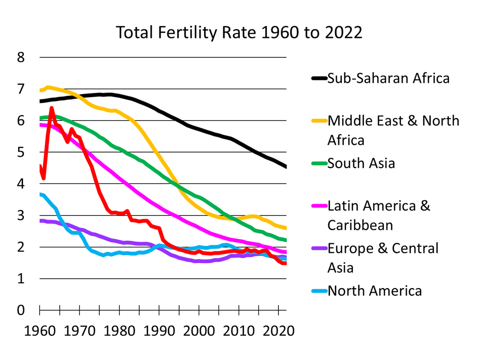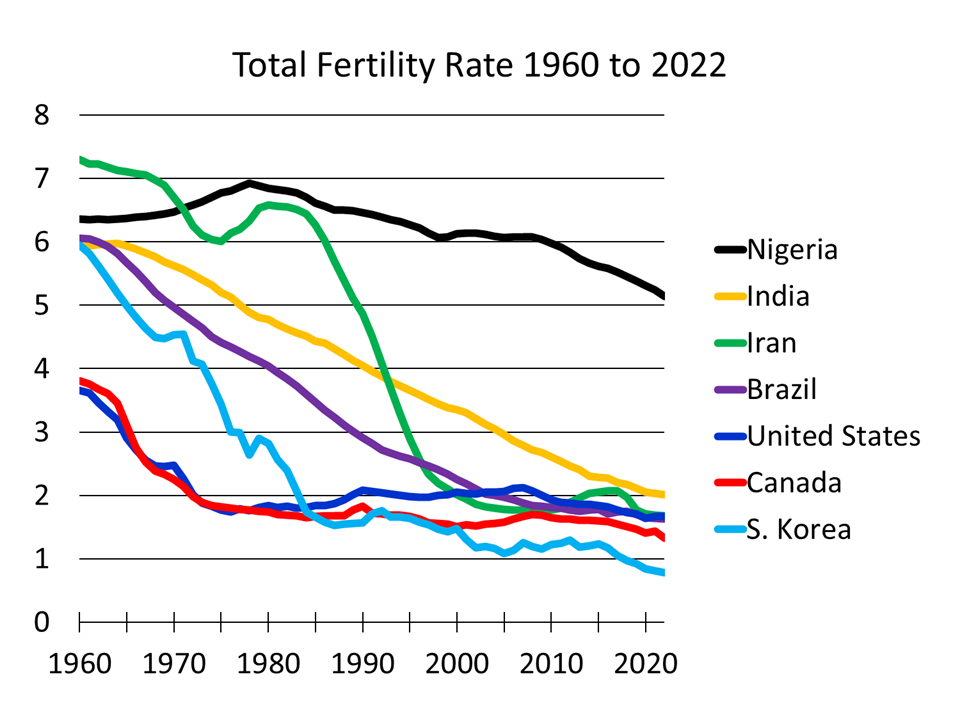 Again, low fertility is not confined to the West. It occurs in many different countries with different social conditions, such as China, Japan, Russia, Germany, Brazil and Iran.